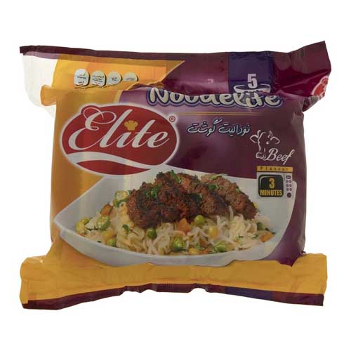 نودل با طعم گوشت الیت غذایی سریع و آسان بوده که تنها سه دقیقه نیاز به آماده شدن داشته و دارای دو قسمت نودل و ادویه با طعم گوشت قرمز میباشد. این محصول در دو بسته یک عددی با وزن 75 گرم و 5 عددی با وزن 375 گرم حاوی کلسیم، سدیم و عصاره گوشت میباشد.