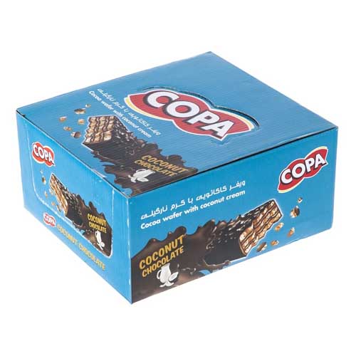 ویفر شکلاتی نارگیلی کوپا روکش کاکائویی 40 گرم 12 عددی تنقلات بیسکویت و ویفر قیمت و خرید محصولات برند کوپا