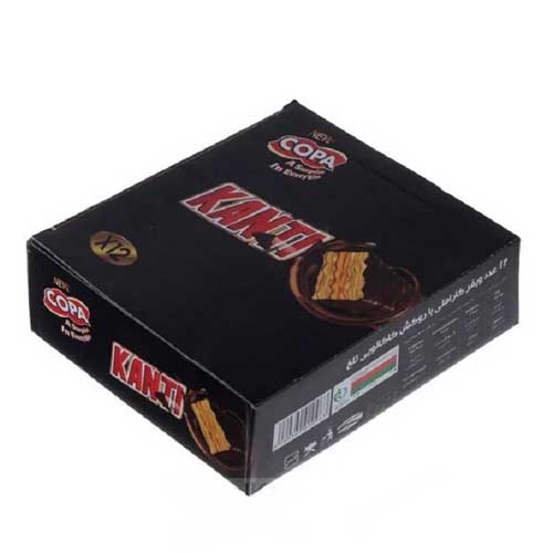 ویفر شکلاتی کاراملی تلخ کوپا کانتی روکش شکلات تلخ 40 گرم 12 عددی تنقلات بیسکویت و ویفر قیمت و خرید محصولات برند کوپا