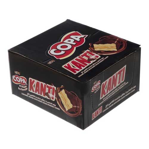 ویفر شکلاتی کاراملی تلخ کوپا کانتی روکش شکلات تلخ 40 گرم 12 عددی تنقلات بیسکویت و ویفر قیمت و خرید محصولات برند کوپا