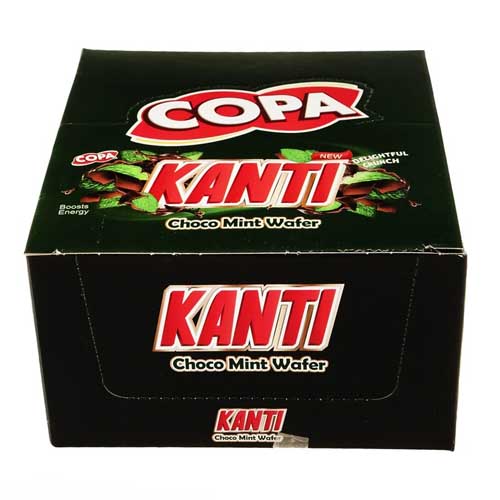 ویفر شکلاتی کانتی کاراملی نعناع کوپا با وزن 37 گرم، دارای روکش کاکائویی و طعم نعناع است و مناسب برای یک میان وعده سالم و خوشمزه برای تمام سنین میباشد و به صورت 1 عددی و بسته 30 عددی عرضه میگردد.