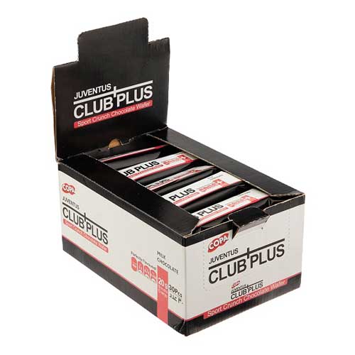 ویفر کلاب پلاس کوپا باشگاه یوونتوس دارای طعم شکلاتی و بسیار ترد و خوشمزه بوده و با وزن 20 گرم و به صورت 1 عددی و بسته 30 عددی عرضه میگردد. طرح باشگاههای فوتبال بر روی این ویفر، مناسب برای طرفداران علاقهمند به فوتبال میباشد.