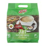پودر کافی میکس فندقی 3 در 1 کوپا با وزن ساشه ای 18 گرم به صورت تک، بسته 20 عددی و بسته 40 عددی عرضه گردیده و از آسیاب شدن دانههای قهوه با کیفیت تهیه شده است. این محصول دارای شکر و قند بوده و تنها با یک لیوان آب گرم حاضر میشود.