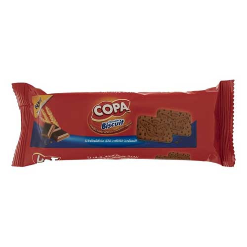 بیسکویت کاکائویی با تکههای شکلات کوپا، یکی از خوشمزهترین بیسکویتها بوده و باکالری مناسب، یک خوراکی سالم و خوب برای کودکان و یا میانوعده سبک برای بزرگسالان محسوب میشود و در وزنهای 30، 60 و 400 گرمی عرضه میگردد.