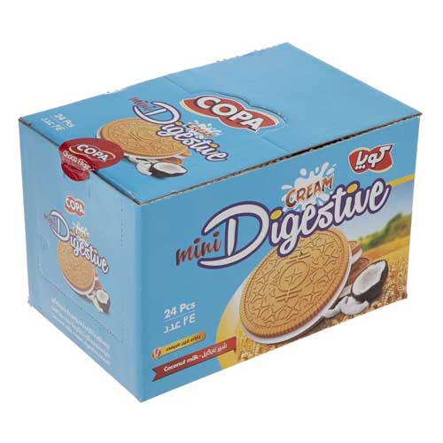 بیسکویت کرمدار سبوسدار کوپا 85 گرم بسته 24 عددی طعم شیر نارگیل دایجستیو تنقلات بیسکویت و ویفر قیمت و خرید محصولات برند کوپا