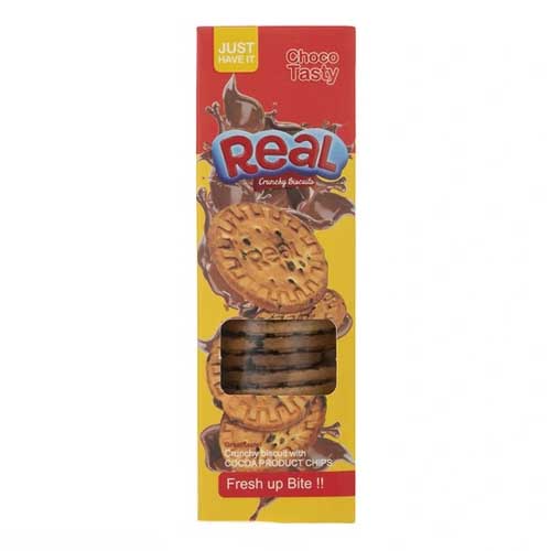 بیسکویت رئال کوپا با تکههای شکلات، در دو وزن 150 و 700 گرمی عرضه گردیده است. سرشار از فیبرو ترد و تازه بوده و مناسب برای یک میانوعده پر انرژی، مصرف روزانه، مهمانیها و پذیرایی میباشد.