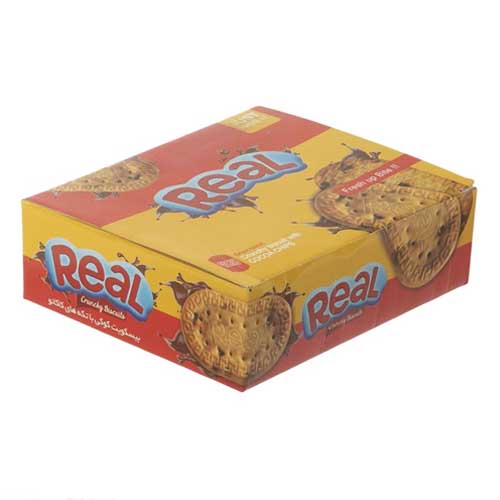 بیسکویت رئال کوپا با تکههای شکلات، در دو وزن 150 و 700 گرمی عرضه گردیده است. سرشار از فیبرو ترد و تازه بوده و مناسب برای یک میانوعده پر انرژی، مصرف روزانه، مهمانیها و پذیرایی میباشد.