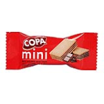 ویفر مینی با طعم کاکائویی شیری کوپا، دارای طعم دلپذیر و خوشمزه شیر و شکلات بوده و مناسب برای یک میانوعده سبک برای کودکان، یا خوراکی مدرسه آنها و یا عصرانه برای بزرگسالان میباشد و به صورت یک عددی و بسته 425 گرمی عرضه میشود.