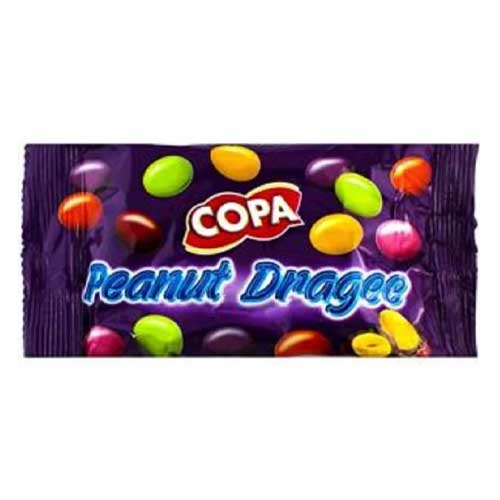 دراژه با مغز بادام زمینی کوپا با وزن 35 گرم در دو بسته بندی پلاستیکی و بهداشتی زرد و بنفش همان اسمارتیز با مغز شکلات و بادام زمینی بوده و خوراکی ای سالم، خوشمزه و مقوی برای کودکان و حتی بزرگسالان میباشد.