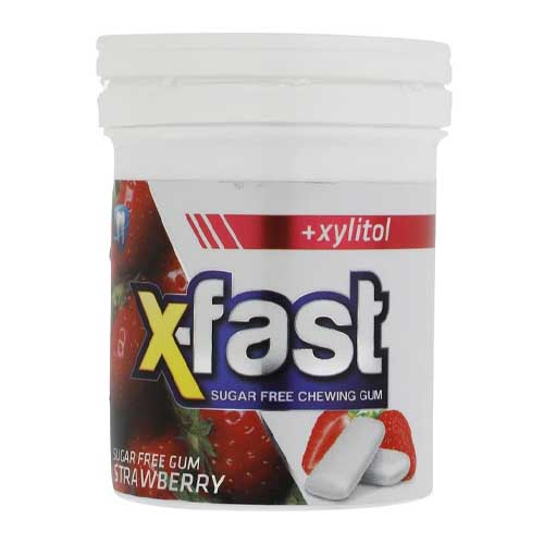 آدامس بدون شکر با طعم توت فرنگی ایکس فست حاوی زایلیتول بوده که باعث خوشبویی بلند مدت دهان، خنکی و از بین رفتن میکروب های دهان شده و دارای 2 عدد بسته پاکتی 10 عددی، یک قوطی بزرگ با وزن 50 گرم و یک قوطی کوچک با وزن 24 گرم میباشد.