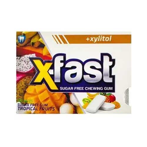 آدامس بدون شکر با طعم میوه های استوایی ایکس فست حاوی زایلیتول بوده که خنک کننده و خوشبو کننده دهان میباشد. این محصول در طعم جذاب و جدید میوه های استوایی دارای دو بسته پاکتی 10 عددی، یک قوطی بزرگ با وزن 50 گرم و یک قوطی کوچک با وزن 24 گرم میباشد.