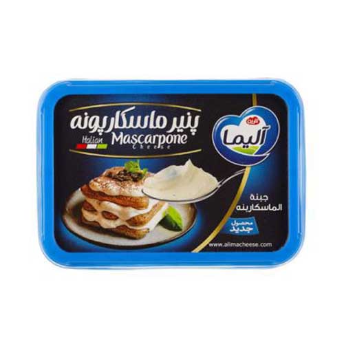 پنیر ماسکارپونه آلیما در سه وزن 150 گرم، 250 گرم و 300 گرم یک نوع پنیر ایتالیایی با بافت نرم و کرمی بوده که از خامهی پرچرب تهیه شده است. این محصول با طعمی ملایم و کمی شیرین مناسب برای مصرف در وعده صبحانه یا درون دسر ها میباشد.