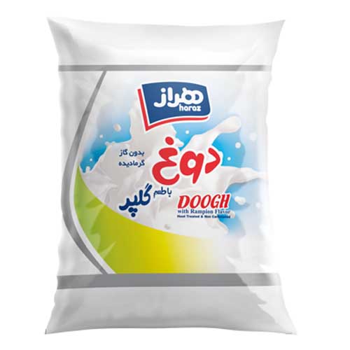 دوغ نایلونی 900 میلی لیتری هراز، با دو طعم دلپذیر نعنا و گلپر، بدون گاز و گرمادیده است. بسیار خوشطعم و خوشمزه و مناسب برای نوشیدن همراه با انواع غذا میباشد.