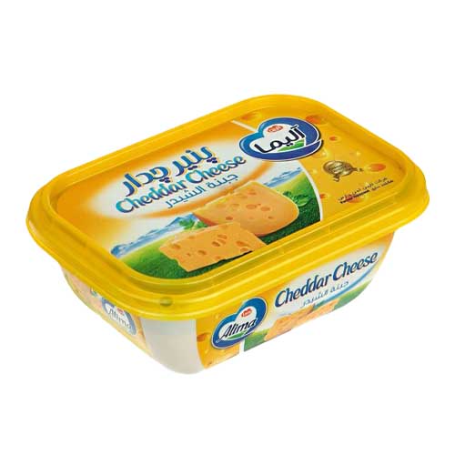پنیر چدار آلیما در مدل های پنیر چدار بسته ای با وزن 250 گرم، ورقه ای با وزن 180 گرم و سه گوش با وزن 140 گرم یک پنیر نسبتا چرب بوده که از شیر تازه گاو تهیه شده است. این محصول دارای رایحهای ملایم و گردویی و طعم و بویی شبیه خامه بوده و حاوی کلسیم، پروتئین و مواد معدنی میباشد.