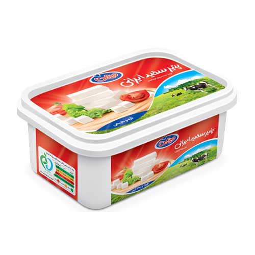 پنیر سفید ایرانی نسبتا چرب میهن در سه وزن 100 گرم، 300 گرم و 400 گرم از شیر تازه گاو تهیه شده و حاوی ویتامین D3 میباشد. این محصول با طعم نمکی و بافت نرم و برش پذیر دارای ماندگاری 70 روزه بوده و در وعده صبحانه و همچنین میان وعده ها قابل استفاده میباشد.