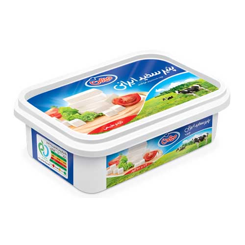 پنیر سفید ایرانی چرب میهن در سه وزن 100 گرم، 300 گرم و 400 گرم دارای طعم شور متوسط و بافت نرم و برش پذیر بوده و حاوی کلسیم، آهن، فسفر، فیبر، پروتئین و مواد مغذی دیگر میباشد. این محصول برای افزایش توده عضلانی، سلامت دندانها و سلامت استخوانها مفید بوده و دارای خاصیت ضد سرطانی میباشد.