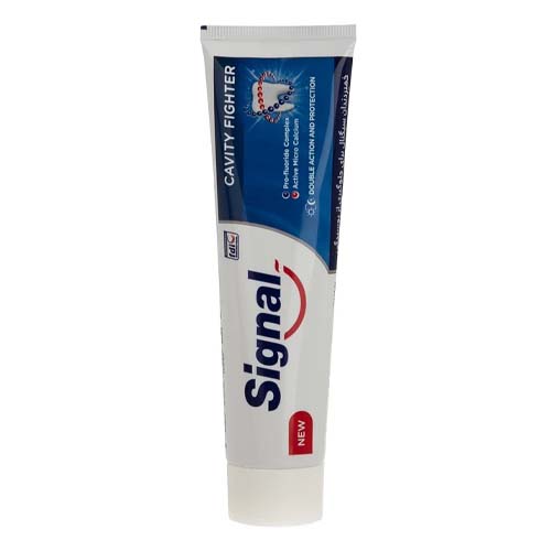 خمیر دندان ضد پوسیدگی کاویتی فایتر سیگنال حاوی پروفلوراید و میکروکلسیمهای فعال و 50% کلسیم بیشترتا 12 ساعت دندان را از پوسیدگی ایمن و باعث ترمیم حفرههای مینای دندان در شب میشود.
