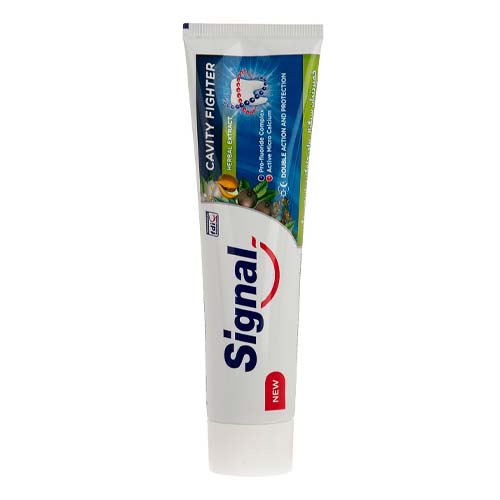 خمیر دندان سیگنال ضد پوسیدگی با طعم گیاهی حاوی فلوراید و میکروکلسیم فعال در هر بار مصرف با 50 درصد کلسیم بیشتر، مینای دندان را تقویت و باعث رفع علائم نخستین پوسیدگی میگردد.