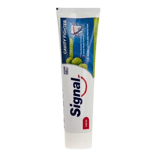خمیر دندان سیگنال ضد پوسیدگی با طعم گیاهی، حاوی فلوراید و میکروکلسیم فعال که در هر بار مصرف با 50 درصد کلسیم بیشتر، مینای دندان را تقویت و باعث رفع علائم نخستین پوسیدگی دندان میگردد.