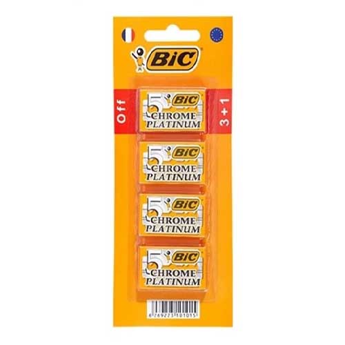 تیغ یدک بیک مدل کروم پلاتینیوم در بسته های تکی شامل 5 عدد تیغ یدک، 4 عددی و 20 عددی دارای بسته بندی مجزا برای هر تیغ بوده و پوششی پلیمری و کروم پلاتینیوم را دارا میباشد. این محصول یک تیغ دو لبه استینلس بوده و امکان اصلاح بهداشتی و مطمعن را ایجاد میکند.