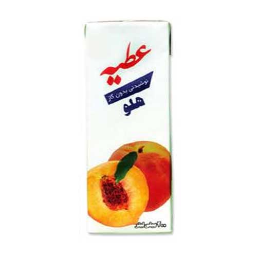 نوشیدنی بدون گاز عطیه با وزن 200 میلی لیتر دارای طعم های هلو، سیب و لیمو، آلبالو، پرتقال، آناناس و انبه میباشد. این محصول سرشار از ویتامین C، ویتامین A، فیبر و ترکیبات آنتی اکسیدان بوده و نوشیدنی ای سالم و مقوی برای تمام سنین میباشد.