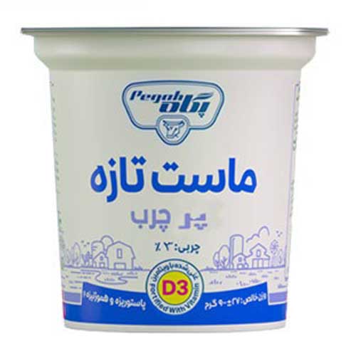 ماست پر چرب لیوانی پگاه با وزنهای 500، 700 و 900 گرمی عرضه میگردد. ماست دارای پروتئین، کربوهیدرات، امگا و فیبر بالایی بوده و بسیار مفید برای سلامت بدن میباشد و جایگاه ویژهای در سفره خانوادههای ایرانی دارد.