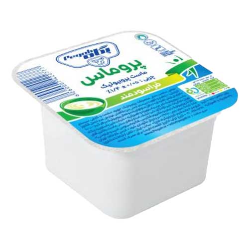 ماست پروماس پروبیوتیک کم چرب پگاه با دو وزن 100 و 900 گرمی در بستهبندی لیوانی عرضه میگردد. این محصول پروبیوتیک بوده و حاوی کلسیم، پروتئین و باکتریهای مفید و سالم بدن میباشد و باعث سلامت دستگاه گوارش و جلوگیری از انواع بیماری میشود.