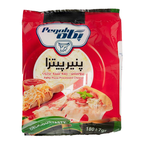 پنیر پیتزا پروسس رنده شده پرچرب پگاه در دو وزن 180 گرم و 500 گرم از شیر گاو تازه و با کیفیت تهیه شده و مناسب برای استفاده در پیتزا، ساندویچ، اسنک و... میباشد. این محصول دارای قابلیت ذوب سریع و یکنواخت، توانایی حفظ فرم و بافت خود در دمای بالا و ذوب شدن درون فر برای ایجاد یک لایه میباشد.