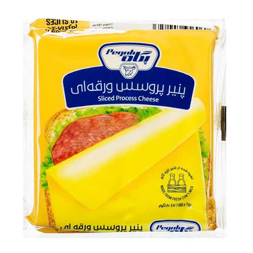 پنیر ورقه ای پگاه با وزن 180 گرم دارای سه مدل پنیر ورقه ای پروسس، پنیر ورقه ای گودا و پنیر ورقه ای چدار میباشد. این محصول برای تهیه انواع ساندویچ و اسنک مناسب بوده و فاقد اسیدهای چرب ترانس میباشد.