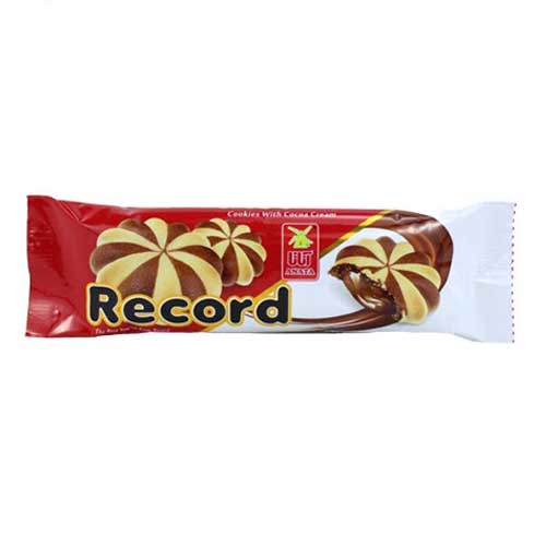 بیسکویت با مغز کرم کاکائو رکورد آناتا با وزنهای 30، 40، 60، 90 و 270 گرم عرضه میگردد. این محصول با طعم شکلاتی و بسیار خوشمزه و دلچسب بوده و مناسب برای میانوعده، خوراکی مدرسه کودکان ویا همراه با چای میباشد.