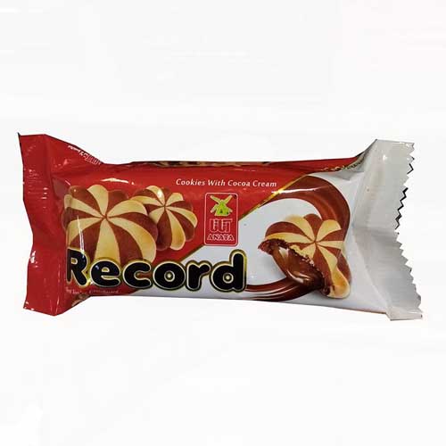 بیسکویت با مغز کرم کاکائو رکورد آناتا با وزنهای 30، 40، 60، 90 و 270 گرم عرضه میگردد. این محصول با طعم شکلاتی و بسیار خوشمزه و دلچسب بوده و مناسب برای میانوعده، خوراکی مدرسه کودکان ویا همراه با چای میباشد.