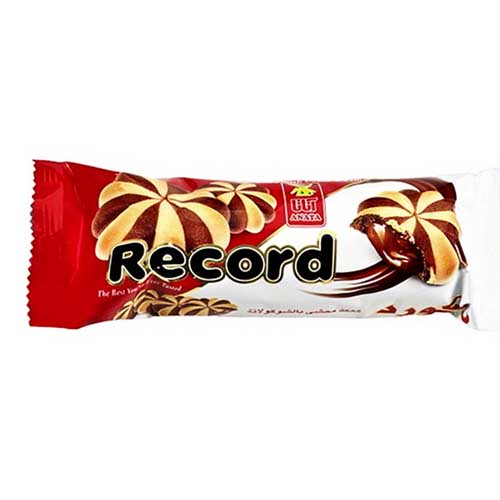 بیسکویت با مغز کرم کاکائو رکورد آناتا با وزنهای 30، 40، 60، 90 و 270 گرم عرضه میگردد. این محصول با طعم شکلاتی و بسیار خوشمزه و دلچسب بوده و مناسب برای میانوعده، خوراکی مدرسه کودکان ویا همراه با چای میباشد.