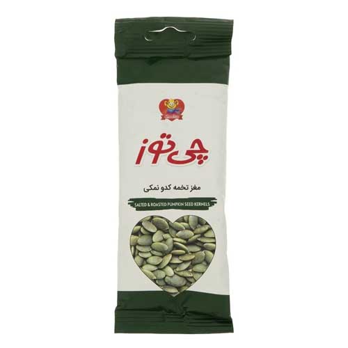 تخمه از خوراکیهای خوشمزه و مغذی با طرفداران زیاد است، که سرشار از آهن، پروتئین، مس، منیزیم و ویتامینها میباشد. مغز تخمه چی توز در سه مدل آفتابگردان، کدو و هندوانه با طعم نمکی در بسته بندی 40 گرمی عرضه گردیده.
