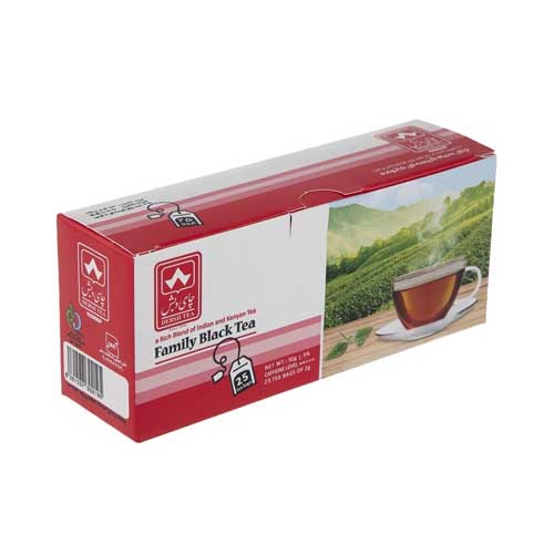 چای سیاه کیسه ای خانواده چای دبش در سه بسته 25 عددی، 50 عددی و 100 عددی دستچین شده از باغات هندوستان و کنیا بوده و دارای عطر و طعم طبیعی و گس میباشد. این محصول برای مصرف خانواده ها تولید شده و در ۳ تا ۵ دقیقه دم میکشد.