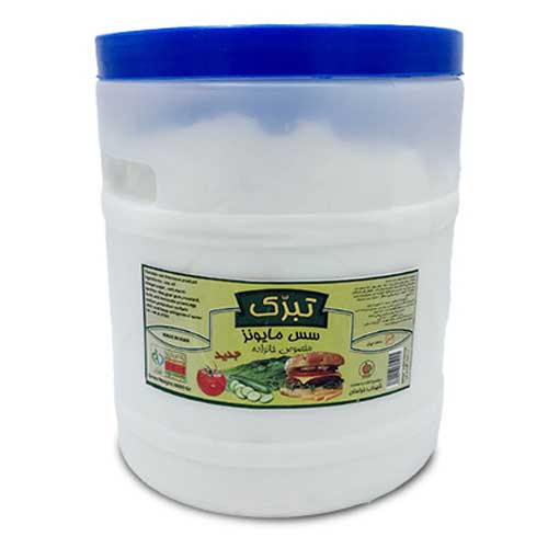 سس مایونز دبه ای تبرک با وزن 8 کیلوگرم و در دو مدل کم چرب و پر چرب عرضه میگردد. از ترکیب زرده تخم مرغ، روغن مایع و سرکه تهیه میشود و مناسب برای طعم و مزه دادن به انواع غذاها، سالاد و یا پختن غذا ها به کار میرود.