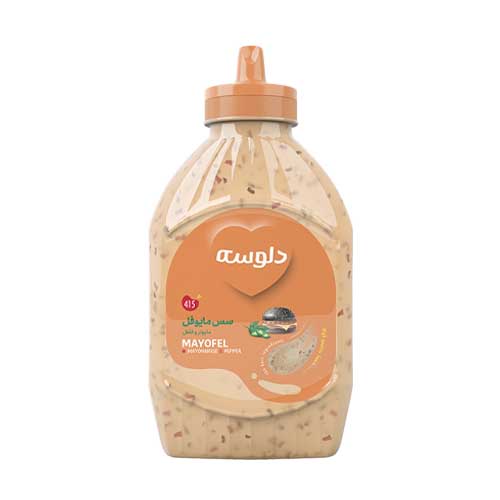 سس مایوفل دلوسه دارای دو وزن 425 گرم و 470 گرم بوده و قابل استفاده در کنار انواع ساندویچ، سوخاری، استیک و کباب میباشد. این محصول با ترکیب سس های مایونز و فلفل به طعم جدیدی به نام مایوفل دست یافته و دارای طعمی تند و جذاب میباشد.