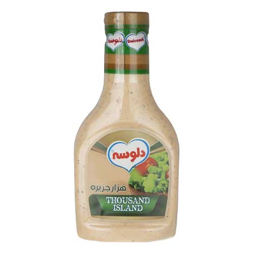 سس هزار جزیره دلوسه در سه وزن 400 گرم، 430 گرم و 480 گرم ترکیبی از سس مایونز، روغن زیتون، تخممرغ، آبلیمو، سس خردل، سرکه، خامه، سیر و جعفری و… بوده و یک چاشنی لذیذ در کنار غذای اصلی، سالاد و پیشغذا میباشد.