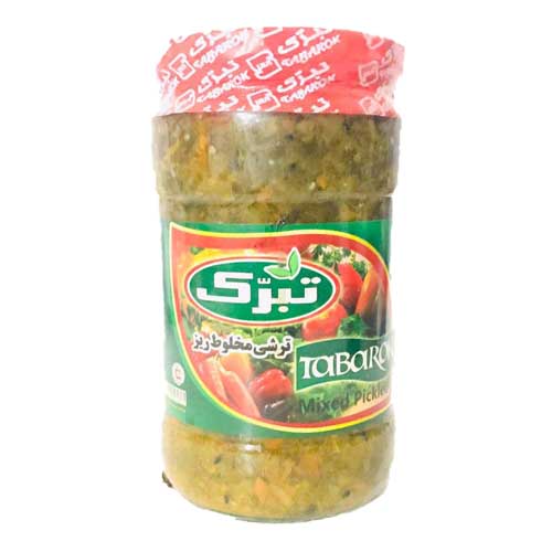 ترشی مخلوط تبرک با وزن 700 گرم و دو مدل ریز و درشت عرضه میگردد. این ترشی از ترکیب سبزیحاتی مانند کرفس، خیار، هویج، گل کلم،سرکه، آب، ادویه ترشی و... تهیه میشود و بسیار خوشطعم و خوشمزه برای مصرف میباشد.
