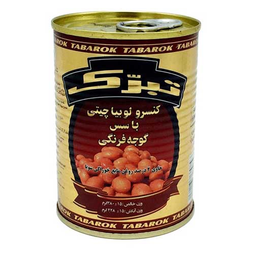 قیمت و خرید کنسرو لوبیا چیتی تبرک با سس گوجه فرنگی