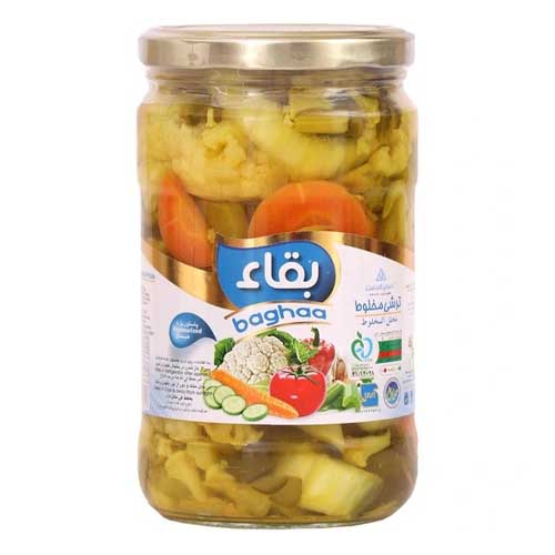 ترشی مخلوط بقاء درشت و ریز شیشه ای 580 میلی لیتر شور و ترشیجات انواع ترشی قیمت و خرید محصولات برند بقاء