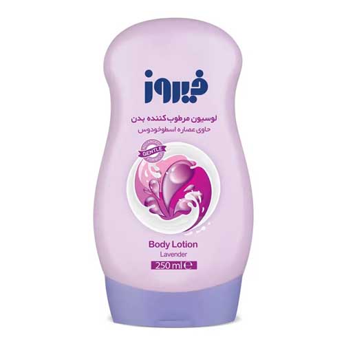 لوسیون بدن فیروز با بافتی سبک و ملایم مناسب استفاده کودکان و برزگسالان میباشد، که با حجم 250 میلیلیتر وسه رایحه عرضه گردیده. این کرم بدن حاوی عصارههای گیاهی، مواد مغذی و ویتامین بوده که باعث رطوبترسانی و حفظ حالت ارتجاعی پوست و جلوگیری از خشکی و پوسته شدن آن میشود.