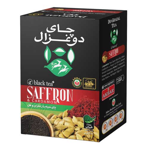چای سیاه طعم دار دوغزال 400 گرم با زعفران و هل معطر پاکتی مقوایی نوشیدنی گرم انواع چای سیاه قیمت و خرید محصولات برند دو غزال