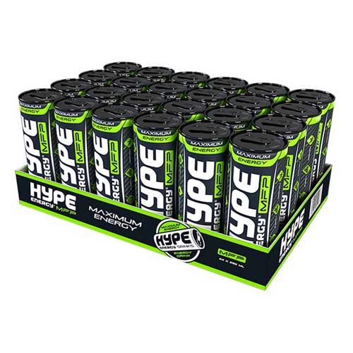 نوشابه انرژی زا هایپ مدل MFP با وزن 250 میلی لیتر حاوی کافئین، تانورین و ویتامینهای B است که باعث افزایش انرژی و هوشیاری، کاهش استرس و آسیب های ماهیچه ای و .. میشود و به صورت 1، 6 و 24 عددی عرضه میگردد.