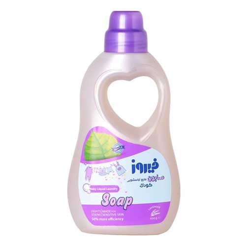 صابون مایع لباسشویی فیروز 1 لیتری با فرمولاسیون منحصر به فرد و رایحه ای دلپذیر و ملایم بدون نیاز به نرم کننده و بدون هیچ گونه آسیب به بافت پارچه و ماشین لباسشویی به حفظ کیفیت لباس کودک، البسه ظریف و حساس کمک میکند.