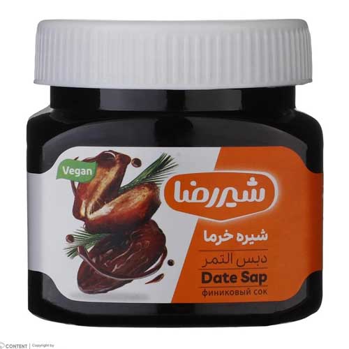 شیره خرما شیررضا با دو وزن 450 و 900 گرمی منبع غنی از قندهای طبیعی است. همچنین سرشار از پتاسیم، منیزیم، آهن و ویتامینهای گروه B بوده و مناسب برای مصرف در وعده صبحانه، میان وعده و... میباشد.