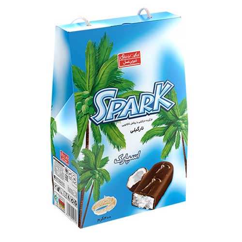 شکلات نارگیلی اسپارک شیرین عسل با دو وزن 400 و 500 گرم عرضه میگردد. این فرآورده نارگیلی دارای روکش شکلاتی بوده و بسیار خوشطعم و پرانرژی است و مناسب برای مصرف به عنوان میانوعده، عصرانه و .. میباشد.