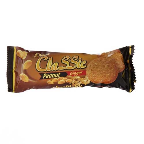 کوکی زنجبیلی پاپل شیرین عسل تنقلات بیسکویت و ویفر با تکه های بادام زمینی قیمت و خرید محصولات برند پاپل