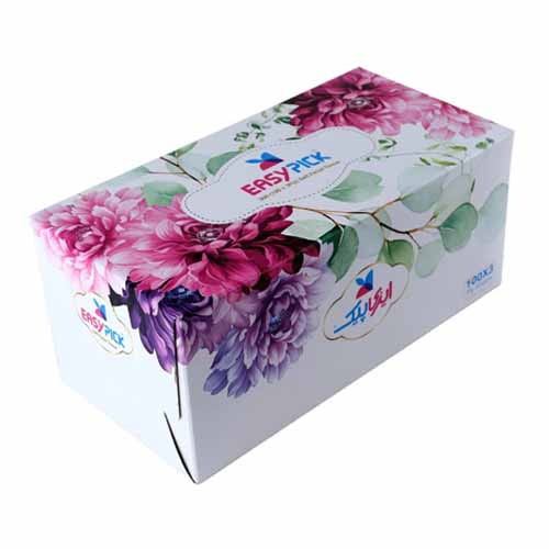 دستمال کاغذی فانتزی ایزی پیک به صورت 100 برگ 3 لایه در بسته بندی جعبه ای شکیل و فانتزی با کیفیت بالا و کاملا بهداشتی در چهار طرح متنوع عرضه گردیده.