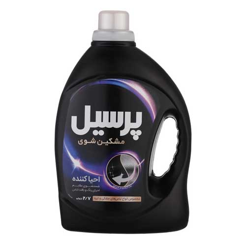 مایع لباسشویی مشکین شوی پرسیل مدل احیا کننده در دو وزن 1 و 2.7 لیتر عرضه میگردد. از ایجاد سفیدک بر روی لباسهای تیره و مشکی جلوکیری و محافظ رنگ البسه است و از کدر شدن لباسها جلوگیری میکند.