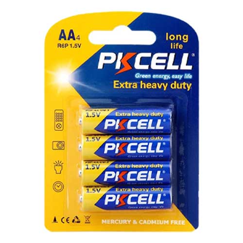 باتری قلمی کربن زینک پی کی سل کارتی با تکنولوژی روی - کربن با ماندگاری طولانی در دو بستهبندی 2 و 4 عددی عرضه گردیده. باتریهای Extra Heavy Duty مناسب مصارف شخصی و فروشگاه ها میباشد.